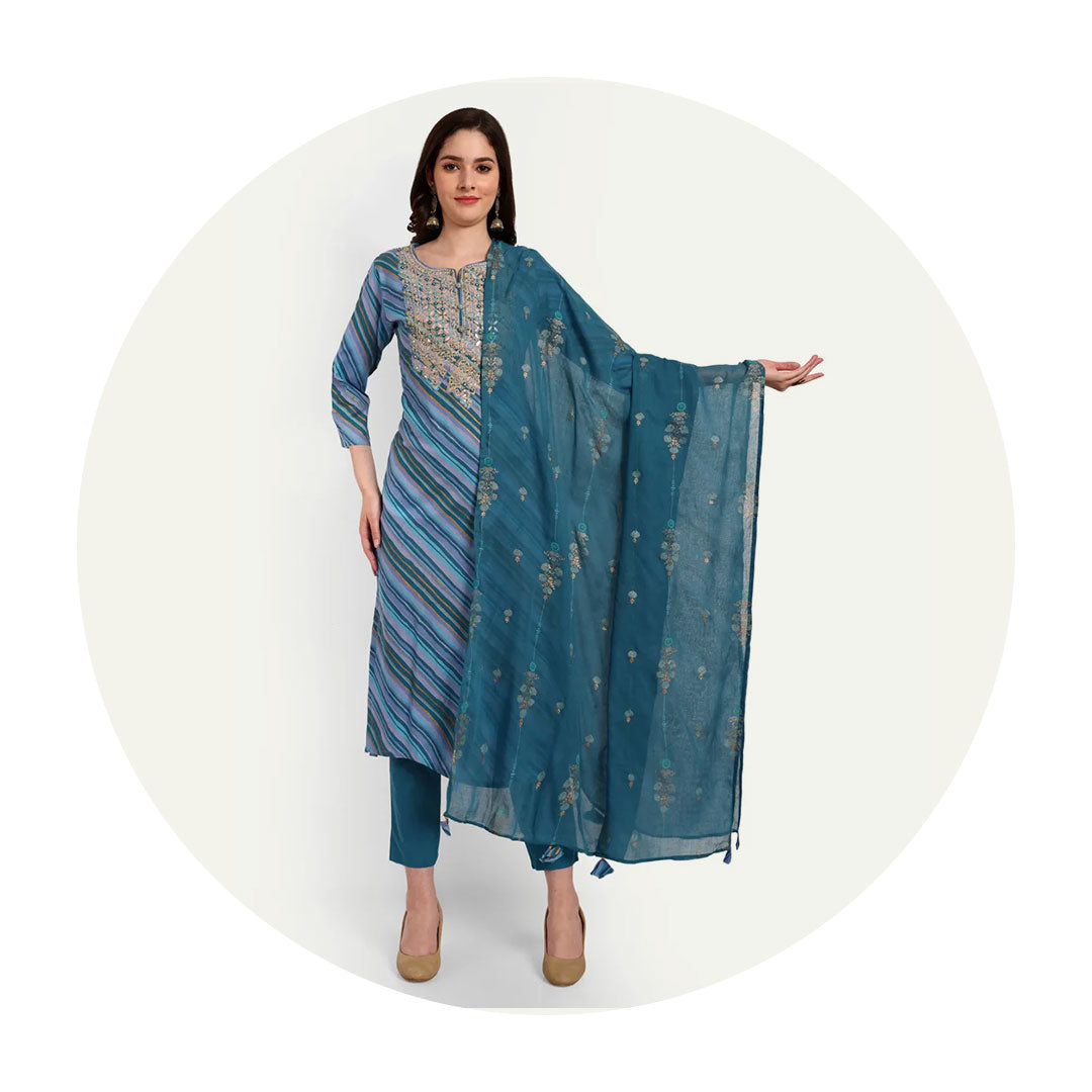 FEEDING COTTON KURTA PANT AND DUPATTA SET