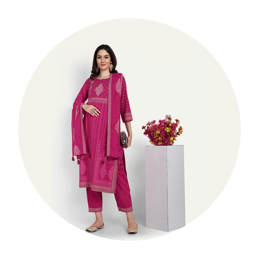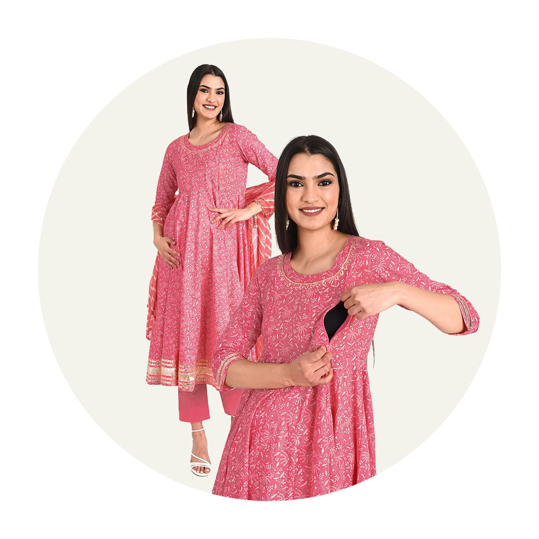 Enhance your comfort and style with our Lavendar Colored Printed Feeding Cotton Kurta Pant and Dupatta Set.