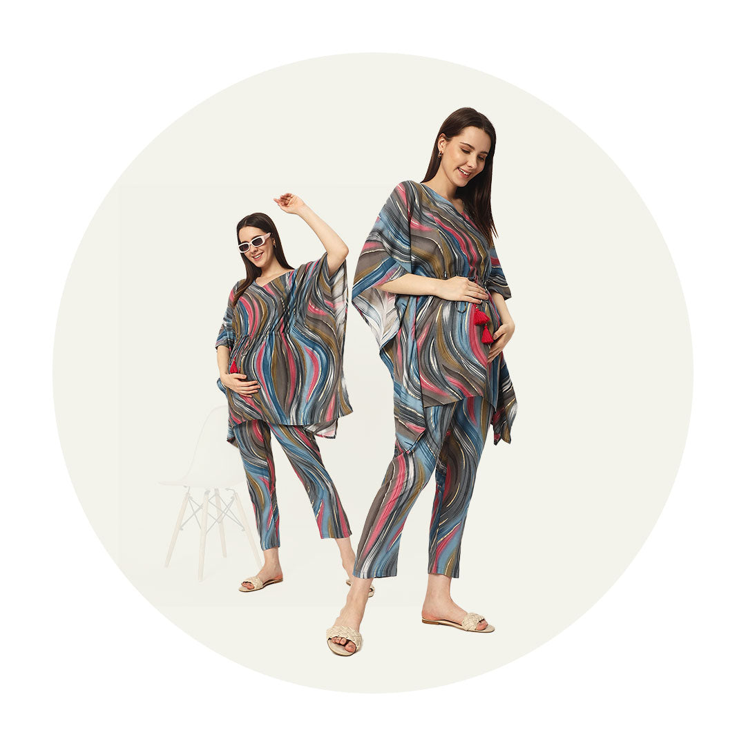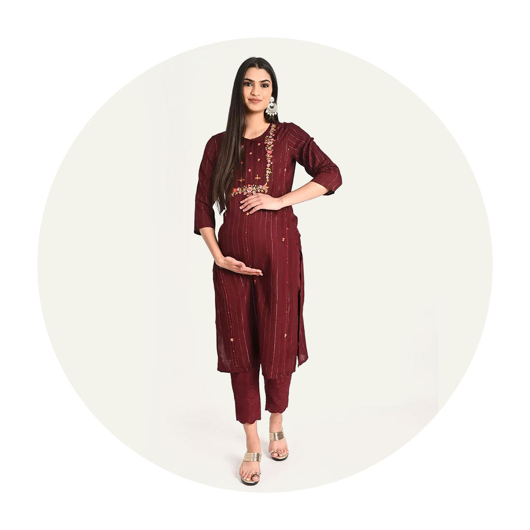 Elevate your maternity style with our COTTON MASLIN EMBROIDER UMBRELLA FLAIRED KURTA. Made from soft and breathable cotton, it features beautiful embroidery and a flared silhouette to flatter your growing bump. The included DHOTI and DUPATTA make it a versatile and functional choice for feeding and maternity purposes. Stay stylish and comfortable with our maternity set.